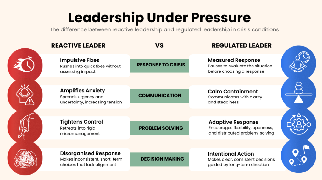 The difference between a reactive and a regulated leader is the difference between contagion and containment. When leaders mirror volatility, they transmit stress across the organisation, triggering urgency, control-seeking, and a drift toward short-term fixes.