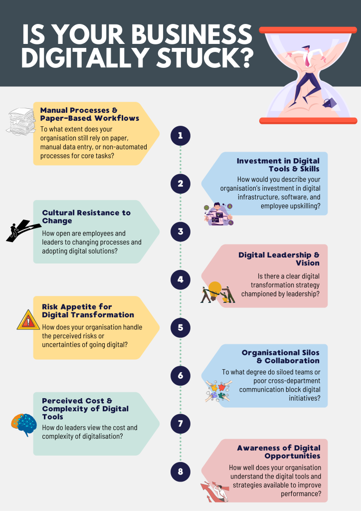 Organisations often hold on to familiar ways of working like a trusted old clock, once reliable, comforting, and perfectly in sync. And that is understandable. For companies with deep histories and legacies to protect, change can feel like a risk to all they’ve built. But maybe the clock needs a reset to keep ticking with the times. The good news? You don’t have to abandon your past, you just have to realign with the present. Customers, business partners, and employees are evolving, and so are the tools and technologies that support them. By embracing change with intention and clarity, your business can stay in rhythm with the world around it. Digital transformation is about staying relevant, resilient, and ready for what’s next.